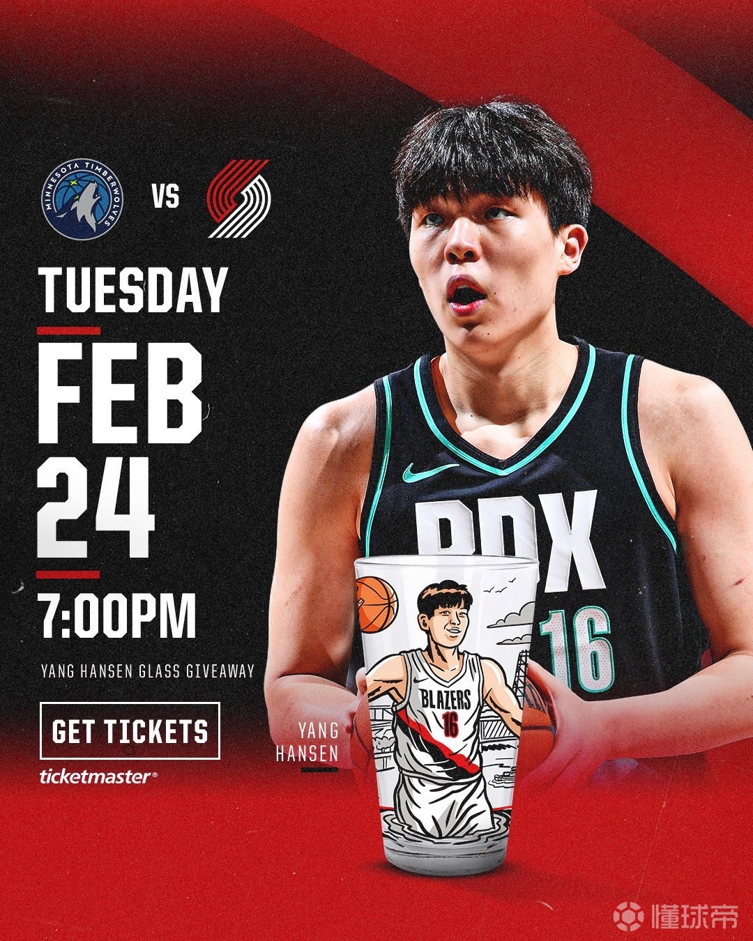 开拓者官方晒出活动海报并表示:‼️ 杨瀚森纪念玻璃杯之夜 ‼️ 杨瀚森纪念玻璃杯之夜 ‼️明晚到场的前 5000 名观众,每人免费赠送一只杨瀚森纪念玻璃杯!记得早点到场!
