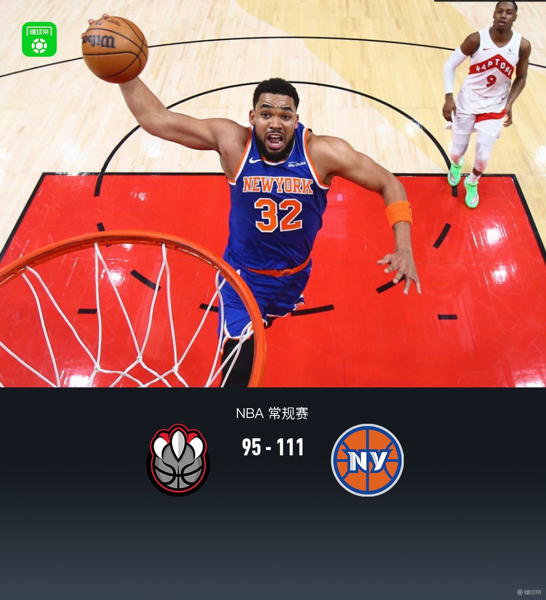 第四节猛龙RJ-巴雷特拿下9分,尼克斯布伦森拿下10分,最终猛龙95-111不敌尼克斯