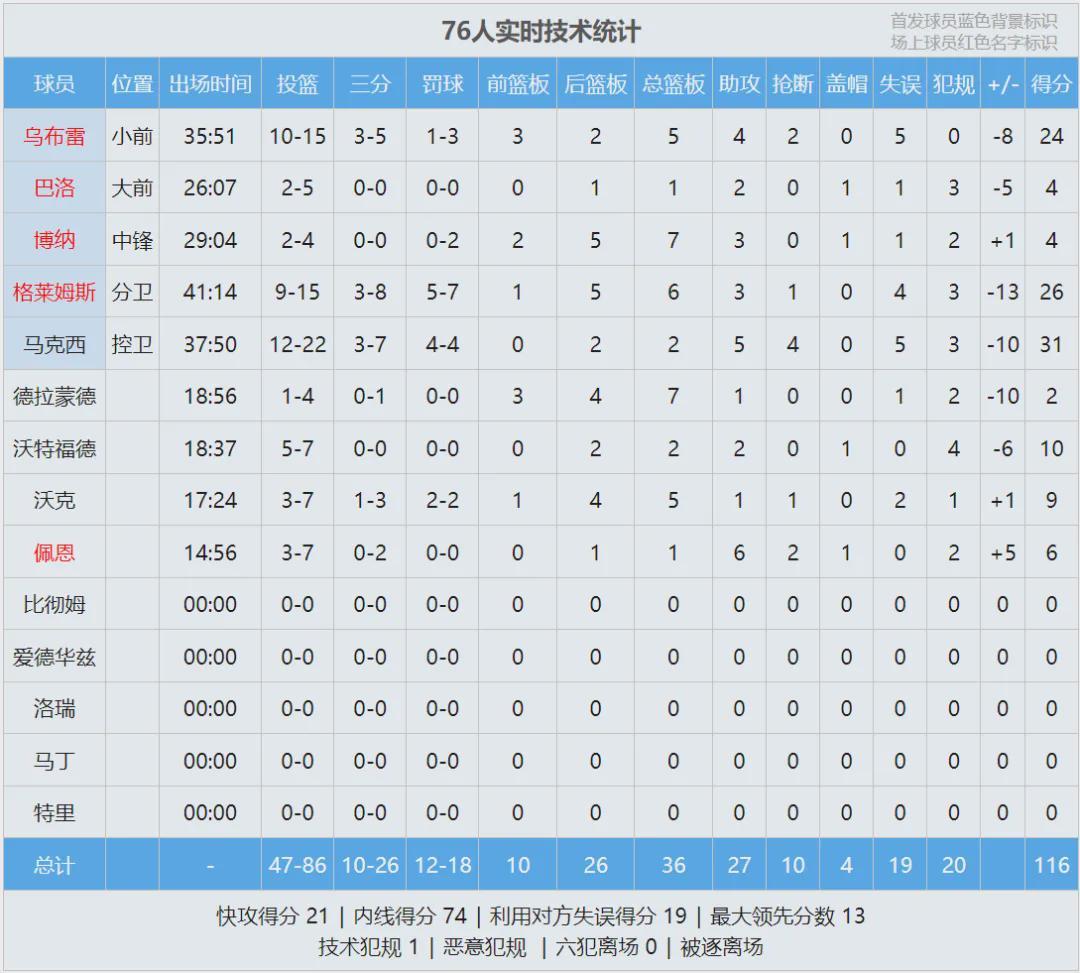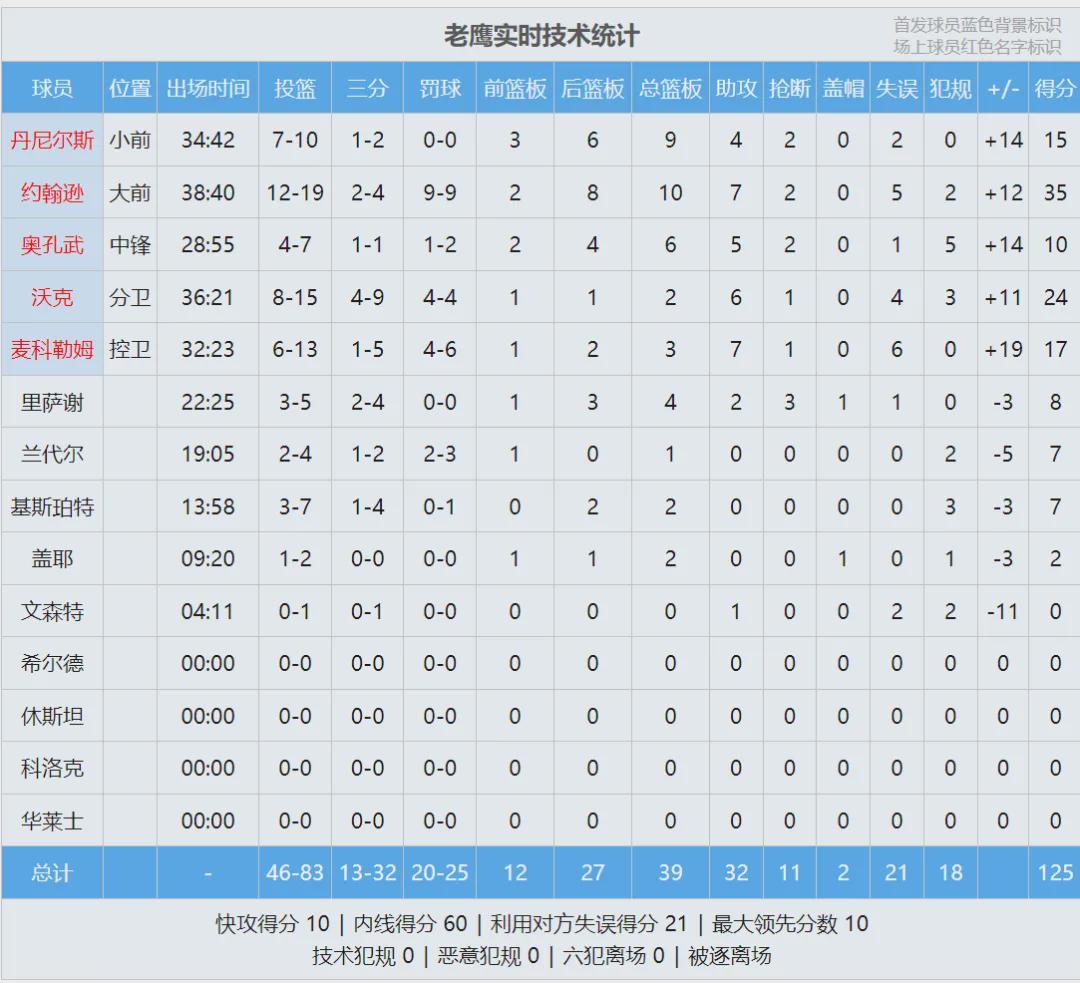 老鹰当家球星杰伦-约翰逊今天出战39分钟,投篮19中12,三分4中2,罚球9中9,狂轰35分10篮板7助攻2抢断!本赛季面对76人,杰伦-约翰逊场均能轰下30分11篮板7.8助攻1.8抢断。老鹰新援库明加,因伤连续第二场缺席。