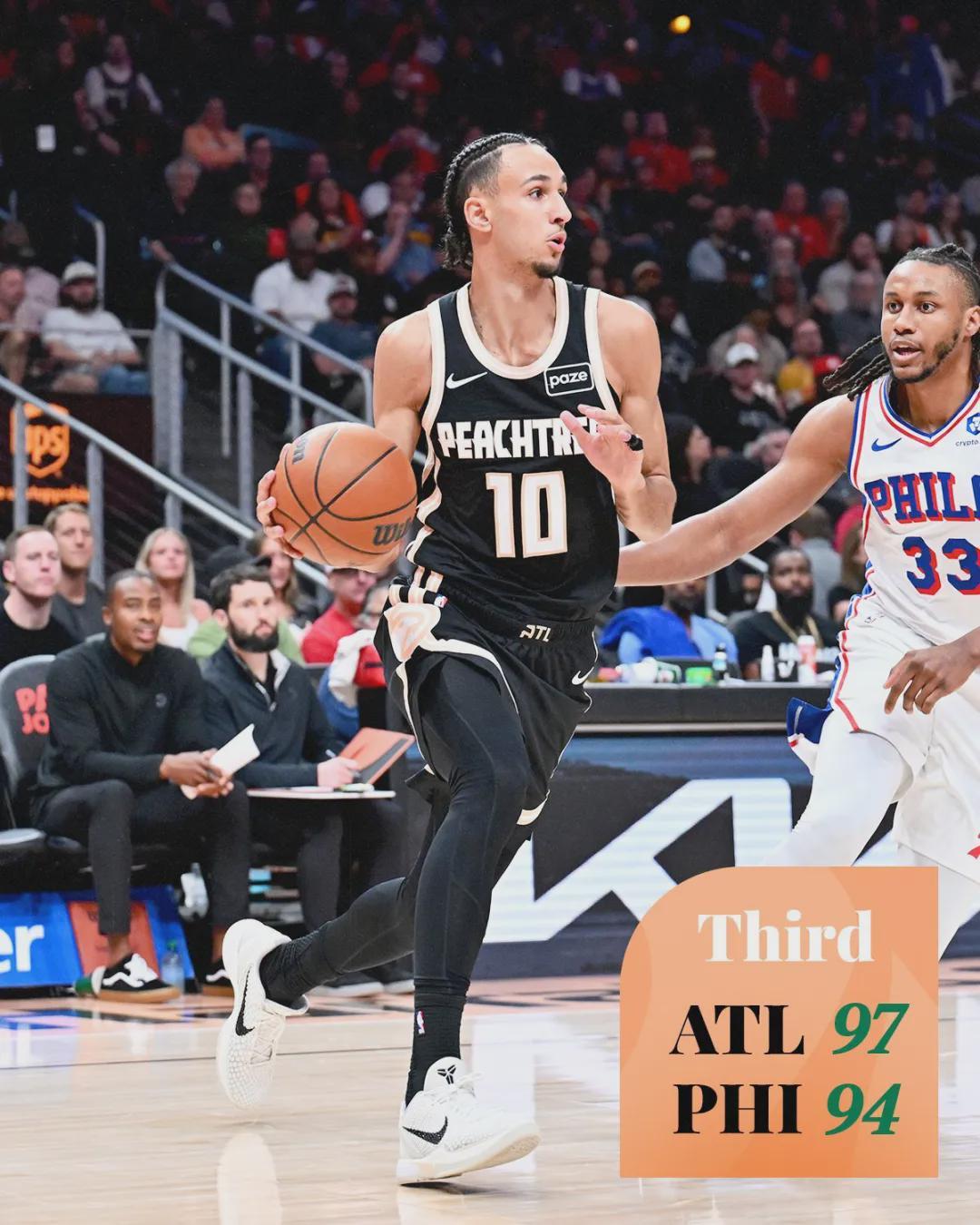 北京时间3月8日,NBA常规赛:老鹰125-116力克76人,本赛季老鹰4-0横扫76人。老鹰豪取6连胜,也是NBA目前没有断掉的最长连胜。此役过后,老鹰33胜31负排名东部第9。76人战绩34胜29负,直接从东部第6跌至东部第8。