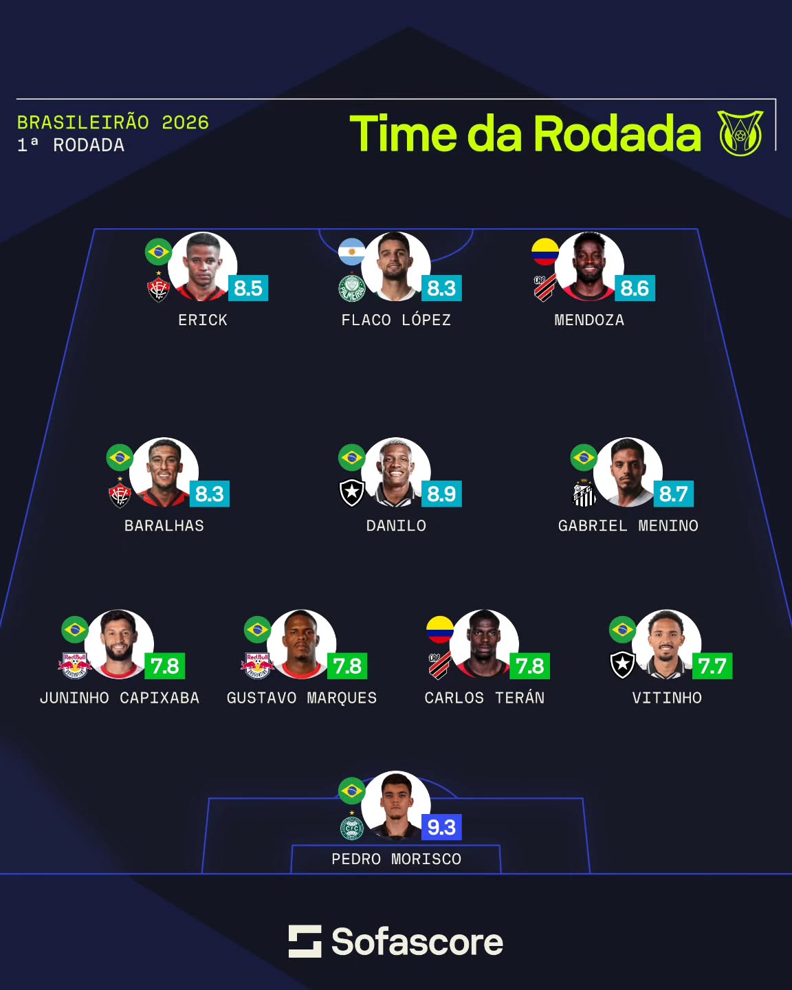 |本轮最佳阵容(SOFASCORE)
