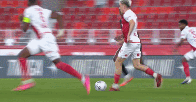 第33分钟,法蒂禁区右路低射破门,摩纳哥1-0雷恩