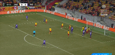 第66分钟,曼德拉戈拉任意球打门,皮球直挂死角,雅盖隆0-2佛罗伦萨
