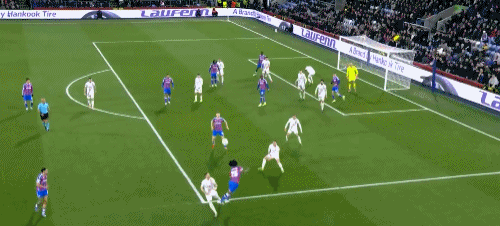 第36分钟,拉克鲁瓦禁区跃起头球破门,水晶宫1-0领先