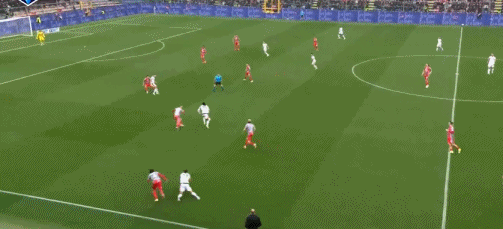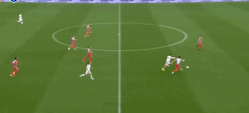 第50分钟,莱奥长途奔袭,最后把球带出底线