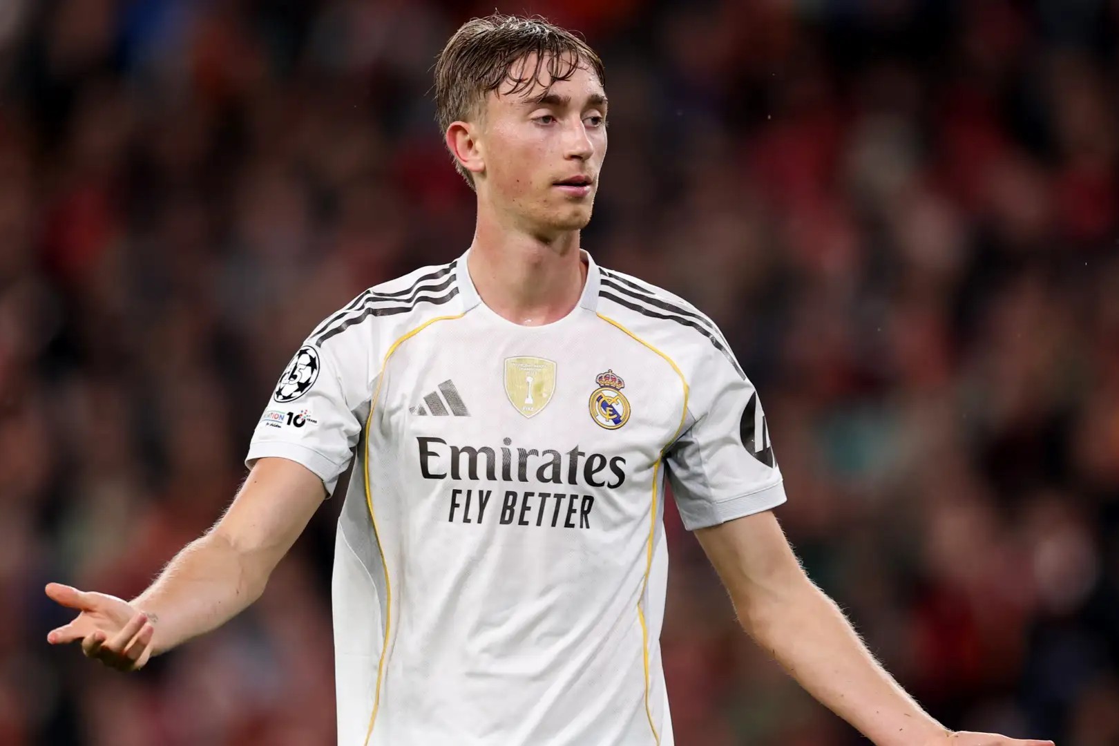 皇家马德里后卫迪恩-赫伊森,因在社交平台分享针对亚洲群体的冒犯性内容,瞬间卷入舆论风暴中心。这位20岁的西班牙国脚此前转发了一则带有贬损评论的图片,随即引发强烈抗议。目前,这则争议内容已从其个人主页删除。该帖包含一张亚洲人物照片,相关配文被中国网友直指种族主义言论。