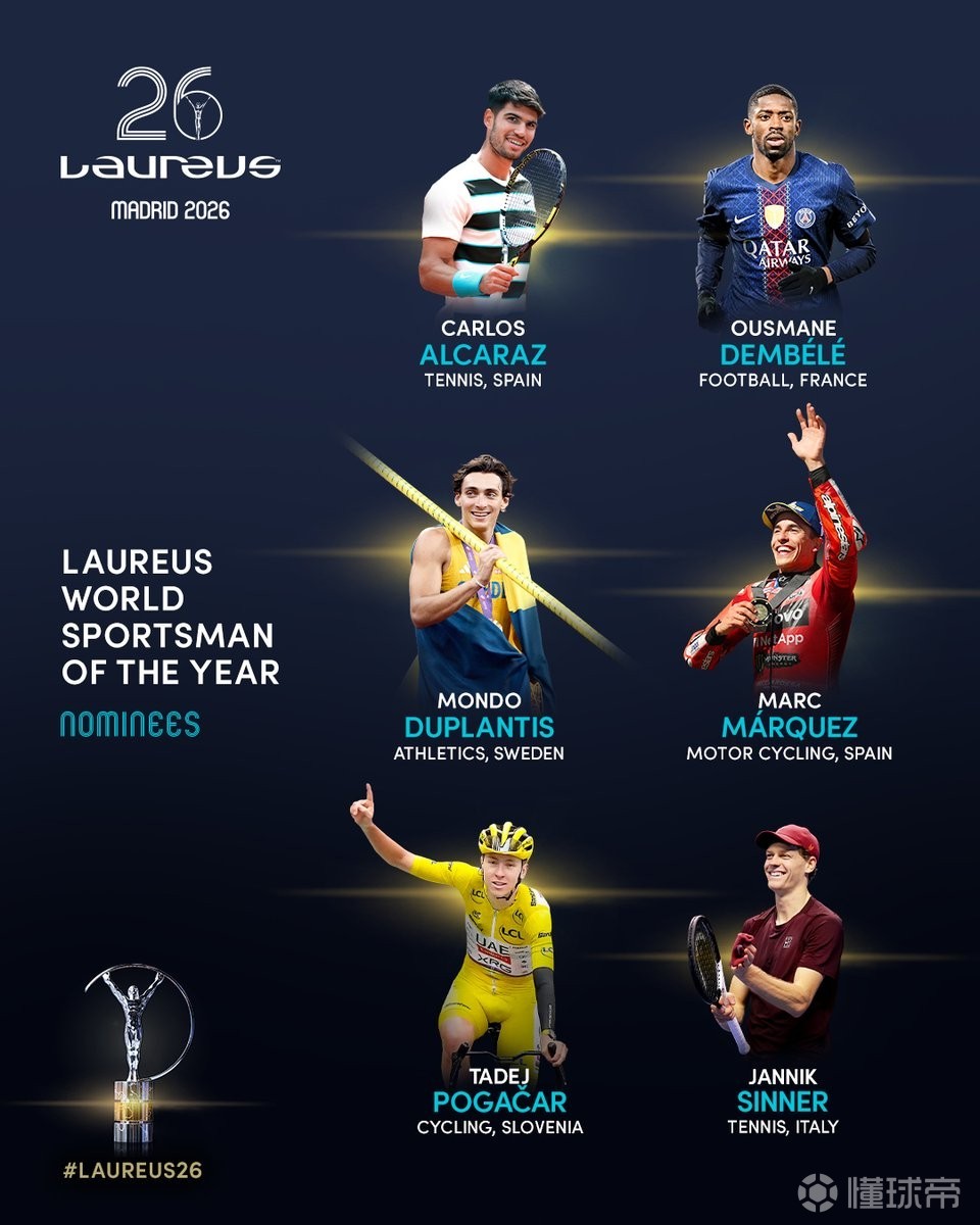 2026年劳伦斯世界体育奖年度最佳男运动员奖提名运动员: