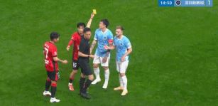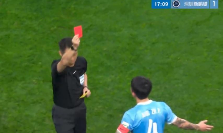 在中超揭幕战里,阿代米为新鹏城取得领先。然而,姜至鹏第15分钟边线肘击韦林顿,主裁判回看慢镜头之后向姜至鹏出示红牌,这是本赛季的第一张红牌。在姜至鹏染红之后,成都蓉城上半场连入3球,逆转了比分。