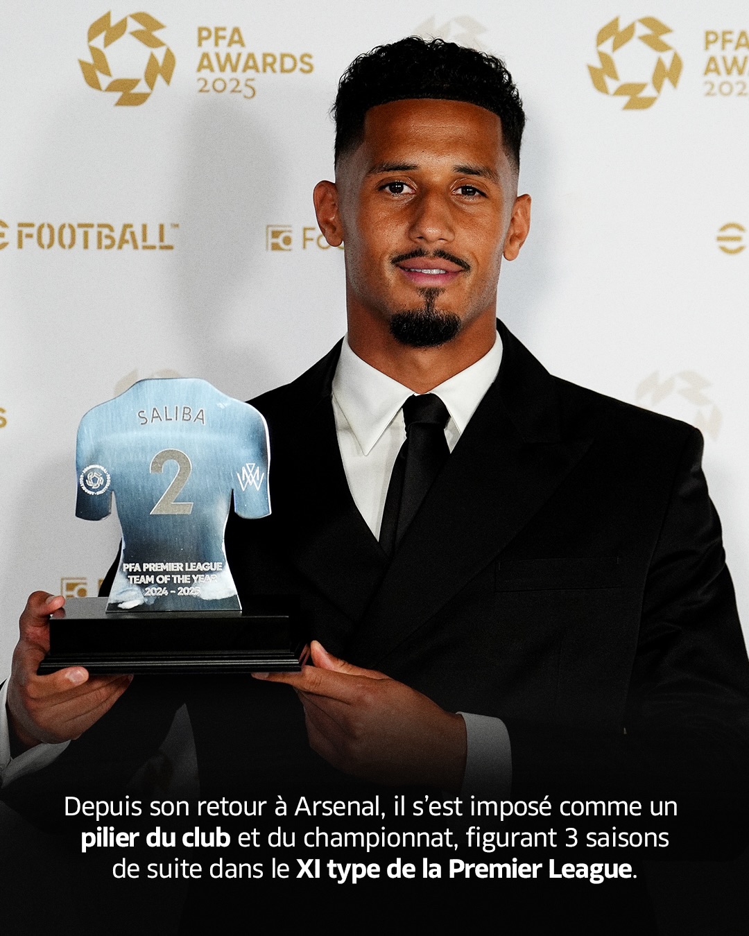 回到阿森纳之后,萨利巴成为了英超联赛乃至世界最好的中卫之一——连续三个赛季入选英超最佳阵容,此外,他也成为了法国国家队的主力。