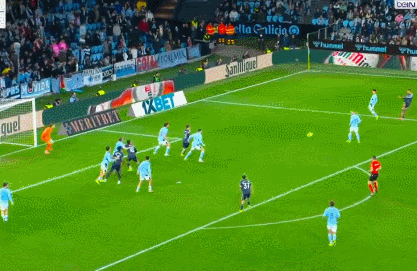 巴尔韦德在禁区外拔脚怒射,皮球不偏不倚,刚好砸在塞尔塔后卫(巧了,正是前巴萨球员)马科斯·阿隆索的身上!皮球划出一道诡异的折射弧线,门将根本反应不及,直接钻入网窝!2-1!