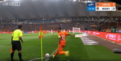 第16分钟,角球机会,弋腾头球破门得分,云南2-0领先