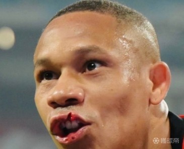图片显示,韦林顿-席尔瓦的上嘴唇裂开一道深口子。