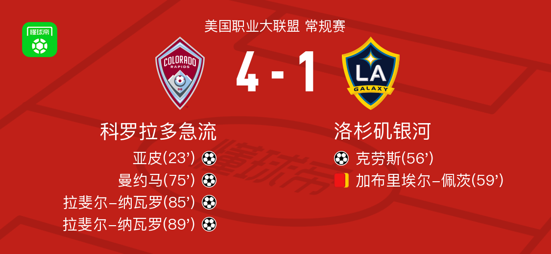 • 科罗拉多急流4-1大胜洛杉矶银河,拉斐尔-纳瓦罗两球,曼约马破门