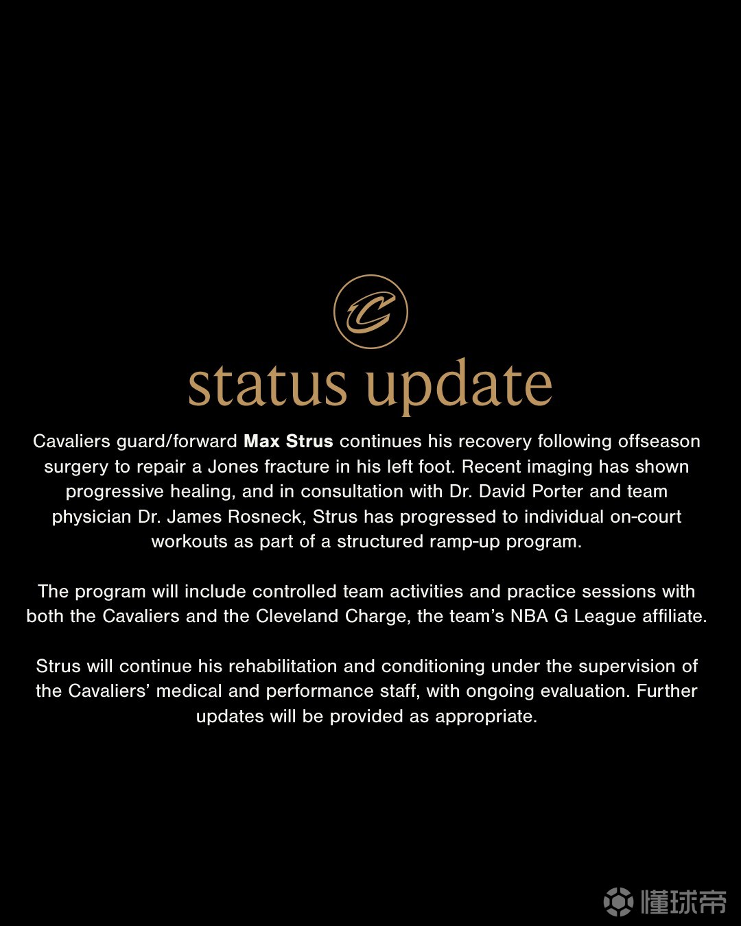 • 骑士官方:斯特鲁斯恢复情况良好,接下来将逐步开启有球训练