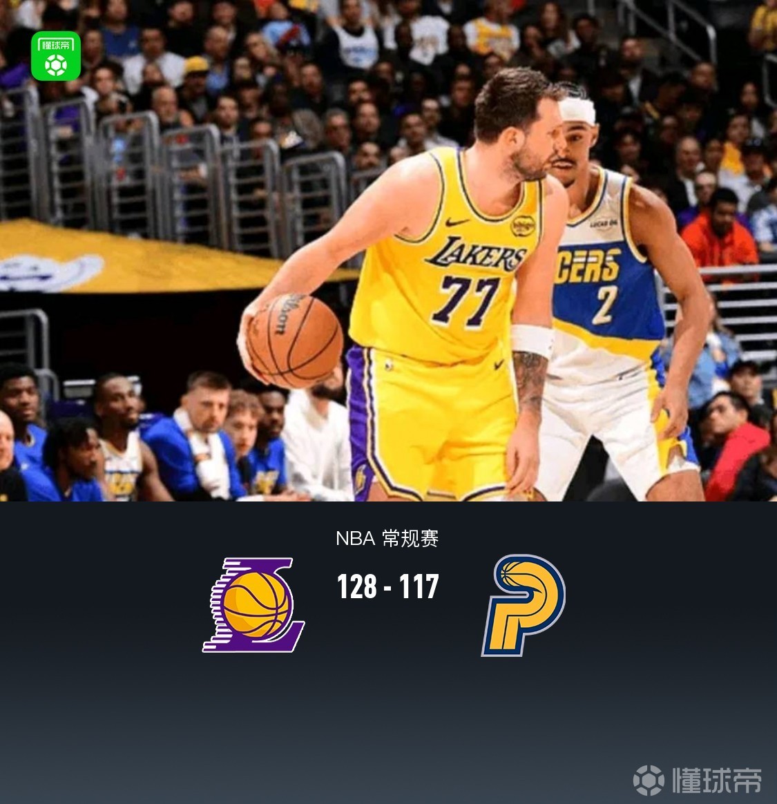 • 湖人128-117轻取步行者,东契奇三节44+9,詹姆斯缺阵
