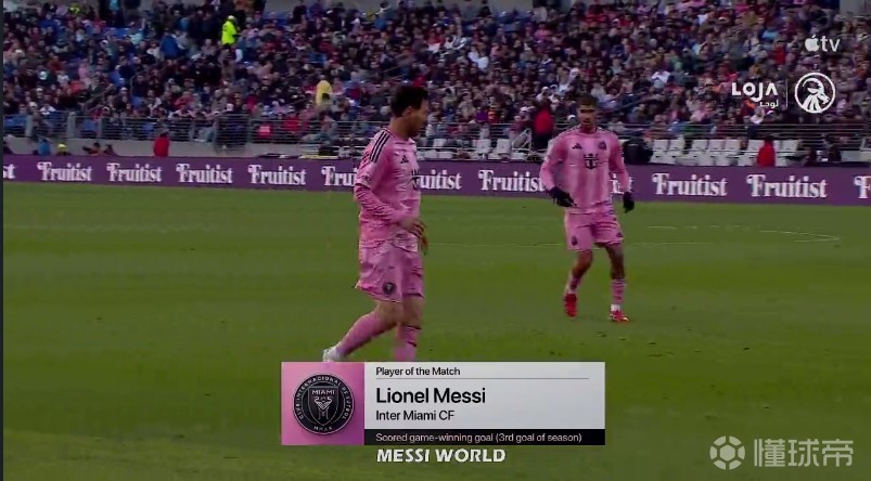 • 打进1球,梅西当选迈阿密2-1华盛顿特区联一役本场最佳球员