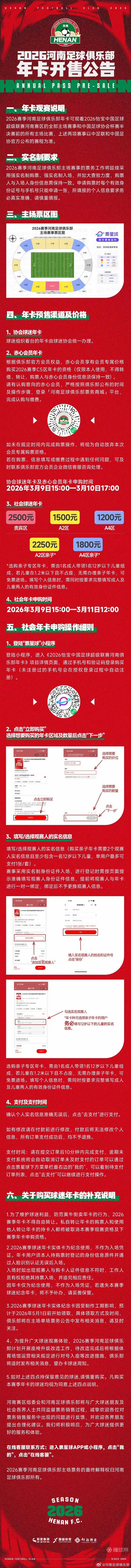 • 河南队发布年卡开售公告:社会球迷年卡1200-2500元